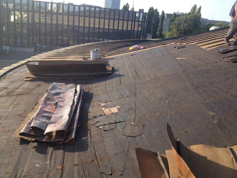 · Zbog dotrajalosti jednog dijela krova ( popucali bočni spojevi, popucali lotani dijelovi kod uvale) bile je neophodna zamjena tog dijela bakrenog pokrova.