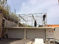 · Na gornjoj AB deki iznad garaže napravljena je čelična konstrukcija i podkonstrukcija objekta koji je obložen krovnim i fasadnim panelima, kao i pripadajućom limarijom i opšavima.