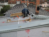 · Na novu oplatu krova je stavljen geotekstil i zavarena završna hidoizolacija krova – Sika , a po svjetlosnim polikarbonatnim pločama zavaren je prozirni PVC.
