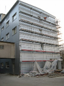 · Na postojeću dotrajalu fasadu objekta postavljena čelična podkonstrukcija i po njoj poliuretanski paneli deb. 6cm. Oko prozora postavljeni su opšavi na koje je lijepljena kamena vuna da se izbjegne hladni most i osigura maksimalna toplotna izolacija. Na svim mjestima prodora kroz fasadu i spojevima piluretanskih panela dodatno je postavljena vuna. Zbog složenosti posla investitora ( prehrambena industrija ) posebna pažnja je posvećena sprečavanju insekata i glodavaca prolaz unutar fasade.