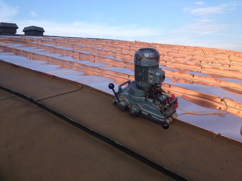 · Zbog dužine krovne plohe na krovu objekta je dignuta mašina gdje su na licu mjesta izvučene nove bakrene limene šare za novi pokrov.