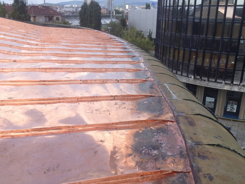 · Zbog dotrajalosti jednog dijela krova ( popucali bočni spojevi, popucali lotani dijelovi kod uvale) bile je neophodna zamjena tog dijela bakrenog pokrova.