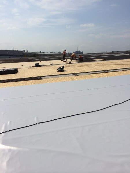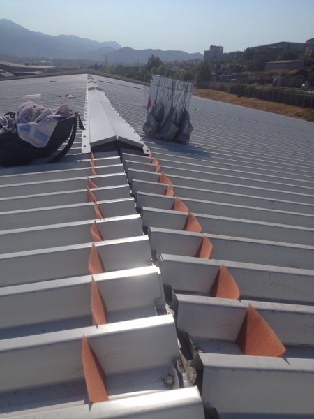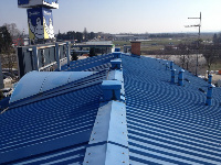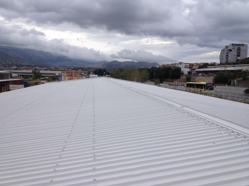 · Zbog velike površine krova ( cca 4800 m2 ) i svjetlosnih traka na krovu objekta ( cca 500m2 ) ,mjestimične dotrajalosti krovnih panela ( progib panela , hrđa sa rupama , loši poprečni spojevi panela ) bila je potrebna sanacija postojećeg krovišta.