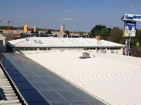 · Postojeći krov sa jednostrukim al. trapeznim limom je skinut i postavljeni su novi krovni poliuretanski paneli deb. 6cm. Zamijenjena je kompletna limarija i opšavi na objektu, a oko svjetlosnih kupola na krovu napravljeni su novi opšavi prilagođeni novom tipu pokrova.