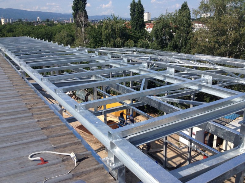 · Skinut je kompletan postojeći pokrov, očišćena čelična konstrukcija i podkonstrukcija krova koja je zaštićena temeljnom i završnom lak bojom.