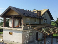 · Nad garažom je napravljena krovna konstrukcija koja se spojila sa postojećim krovom stambene kuće. Na krov su postavljene limene crijep ploče sa pripadajućom limarijom i opšavima.