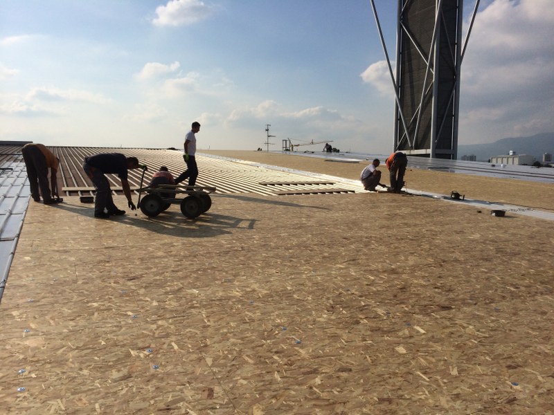 · Na očišćenu krovnu podkonstrukciju postavljeni su krovni poliuretanski paneli sa pripadajućom limarijom i opšavima.
