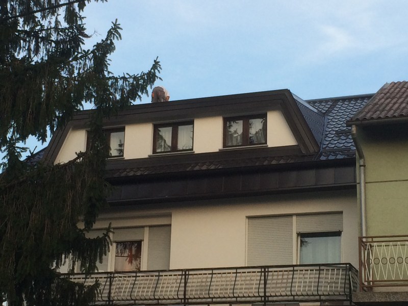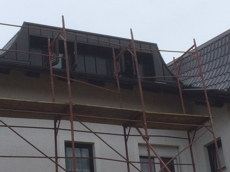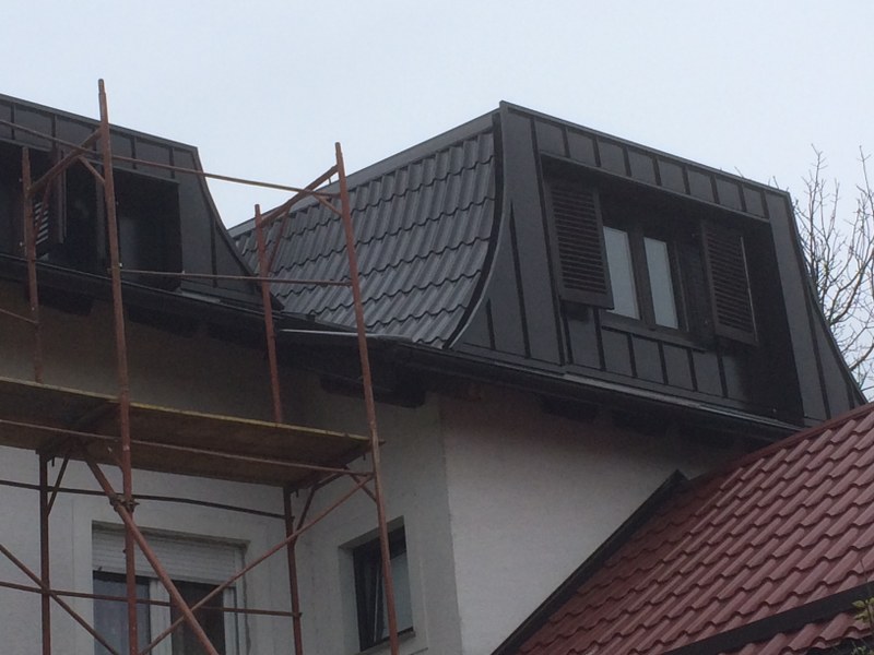 · Na tom objektu je u potpunosti skinuta šindra, postavljena paropropusna folija, duplo falcani lim sa opšavima i kupolama na krovu.