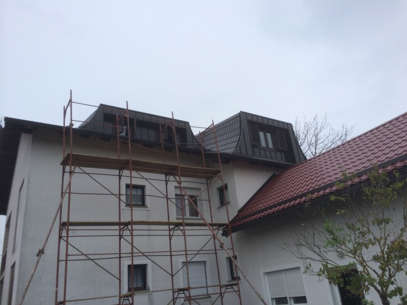 · Zatim je postavljena paropropusna folija, kontraletva i letva. Kao završni pokrov postavljena je limena crijep ploča sa pripadajućom limarijom i opšavima.